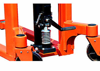 門架采用優(yōu)質(zhì)型鋼焊接而成,剛性好、強(qiáng)度高。后輪使用帶剎車裝置的萬(wàn)向輪,可自由旋轉(zhuǎn)、轉(zhuǎn)動(dòng)輕便靈活,前后輪均以滾珠軸承安裝于輪軸上,轉(zhuǎn)動(dòng)靈活。車輪為尼龍輪,耐磨、耐用,且不易損壞工作地面。手動(dòng)液壓堆垛車